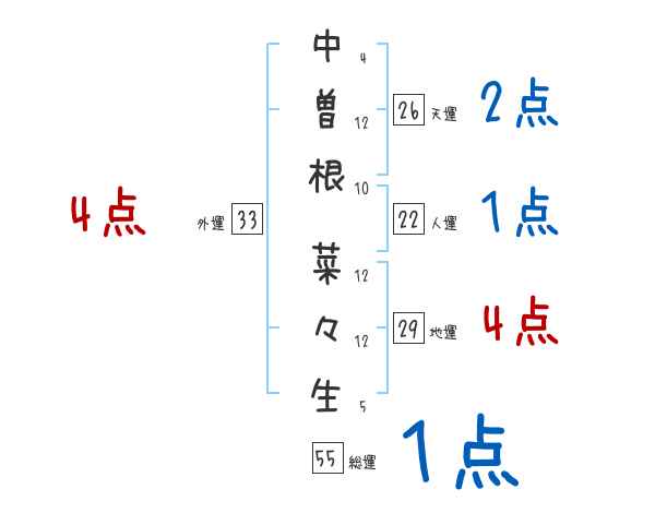 中曽根菜々生さんの画数の鑑定結果
