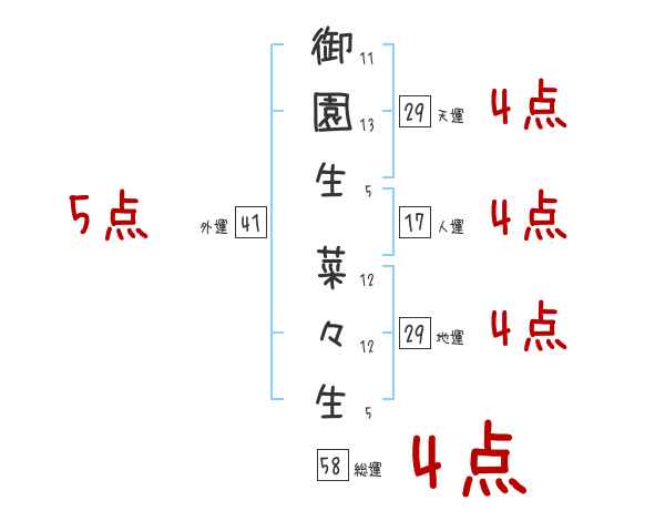 御園生菜々生さんの画数の鑑定結果