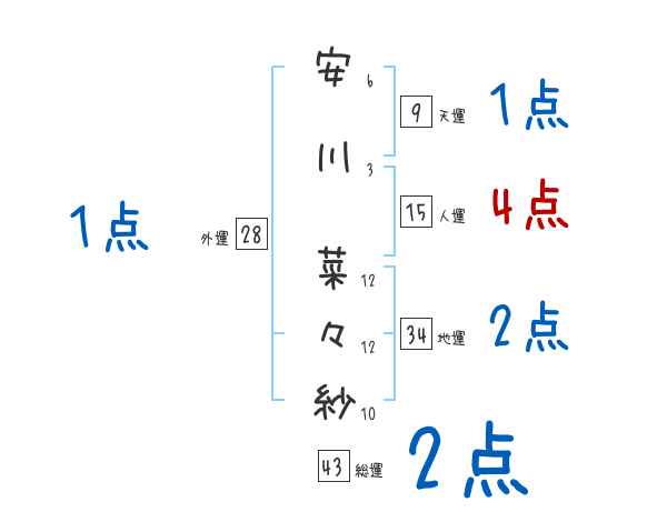 安川菜々紗さんの画数の鑑定結果
