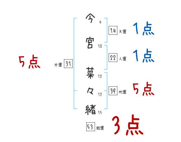 今宮菜々緒さんの画数の鑑定結果
