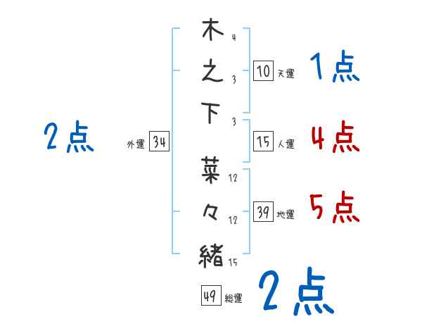 総運![]() | 木之下菜々緒さんの総運は49画の2つ星!不安定な性格で明暗がある人生。周りの人には支援されやすい。 あなたの人生を表す1番重要な運勢です。生涯を通じて影響する総合運となり、主に50歳以降の晩年期に影響を及ぼします。 |