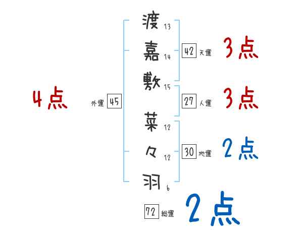 渡嘉敷菜々羽さんの画数の鑑定結果