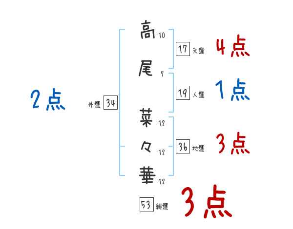 高尾菜々華さんの画数の鑑定結果