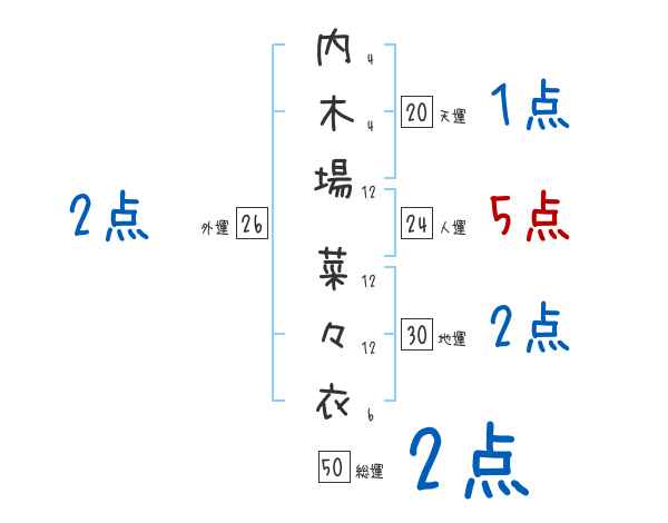 内木場菜々衣さんの画数の鑑定結果
