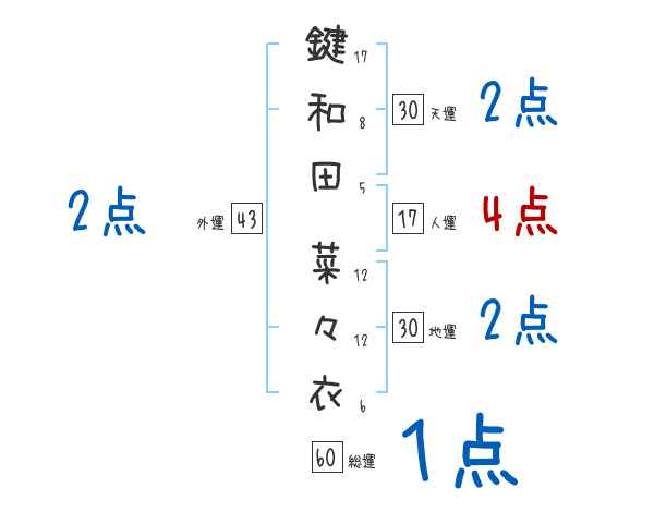 鍵和田菜々衣さんの画数の鑑定結果