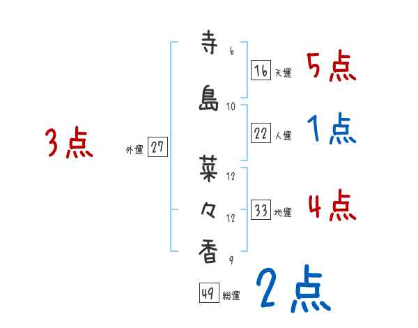 寺島菜々香さんの画数の鑑定結果