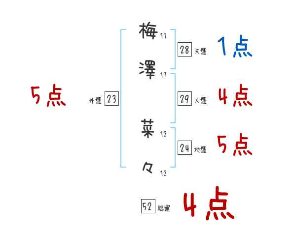 梅澤菜々さんの画数の鑑定結果