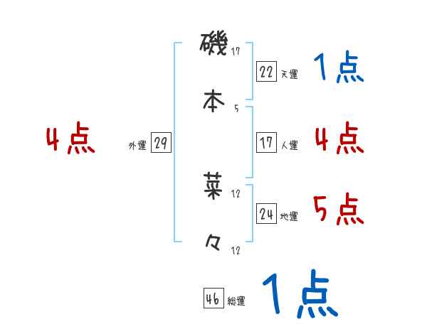 磯本菜々さんの画数の鑑定結果