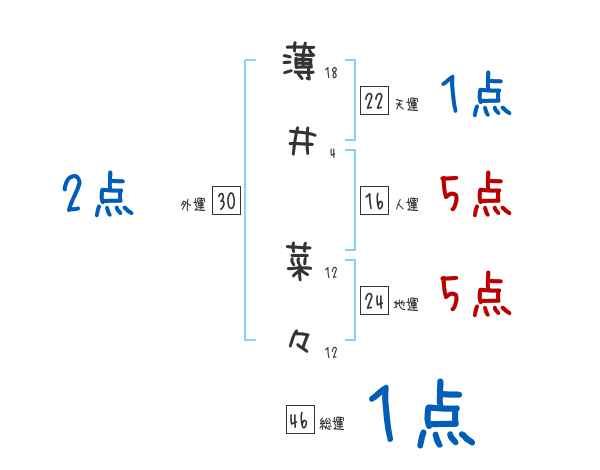 薄井菜々さんの画数の鑑定結果
