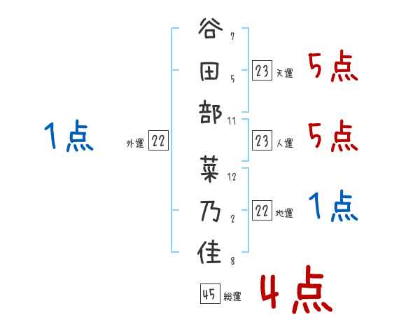 谷田部菜乃佳さんの画数の鑑定結果