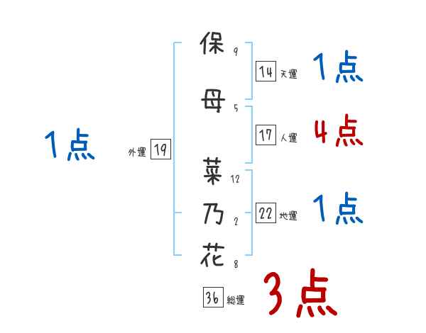 保母菜乃花さんの画数の鑑定結果