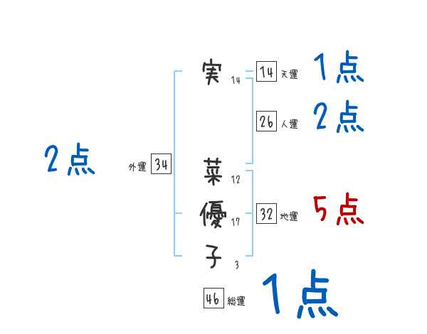 実菜優子さんの画数の鑑定結果