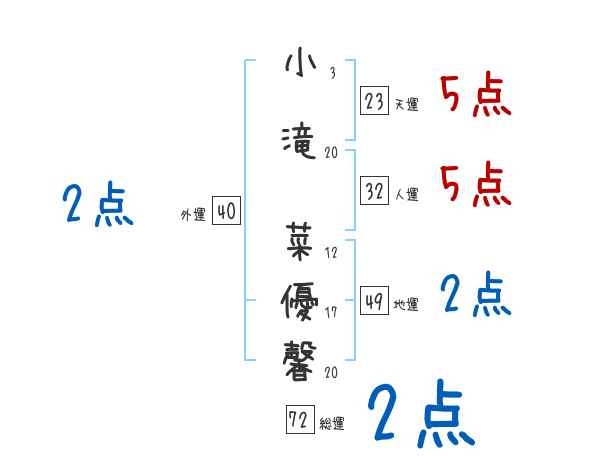 小滝菜優馨さんの画数の鑑定結果