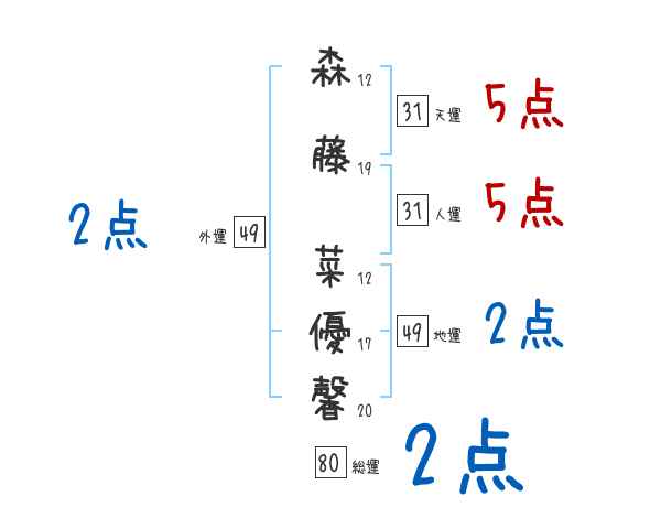 森藤菜優馨さんの画数の鑑定結果