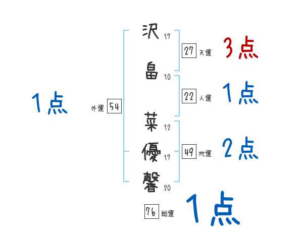 沢畠菜優馨さんの画数の鑑定結果