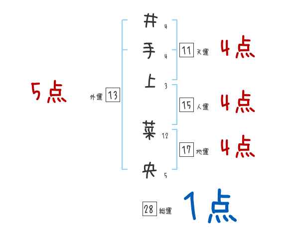 井手上菜央さんの画数の鑑定結果