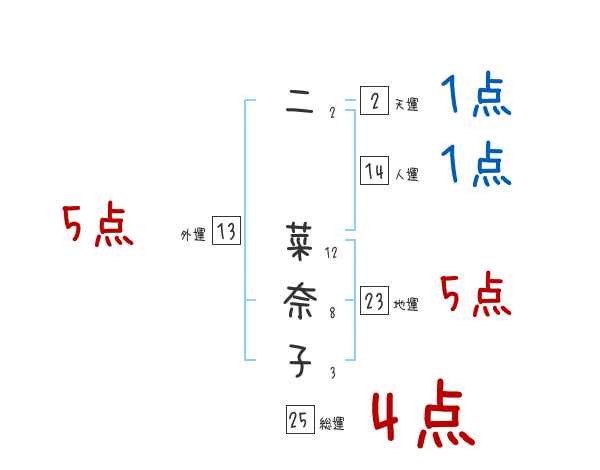 二菜奈子さんの画数の鑑定結果