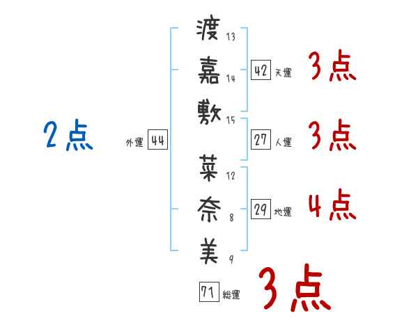 渡嘉敷菜奈美さんの画数の鑑定結果