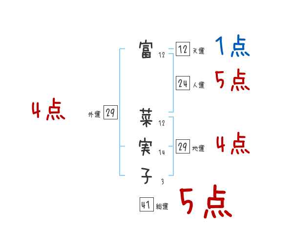 富菜実子さんの画数の鑑定結果