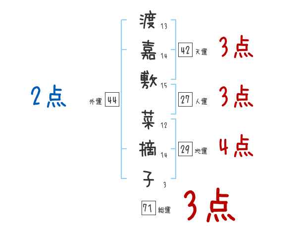 渡嘉敷菜摘子さんの画数の鑑定結果