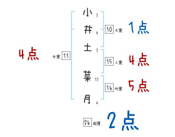 小井土菜月さんの画数の鑑定結果