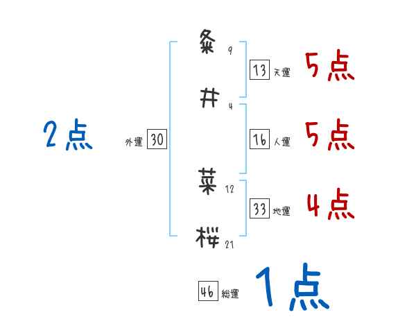 粂井菜桜さんの画数の鑑定結果