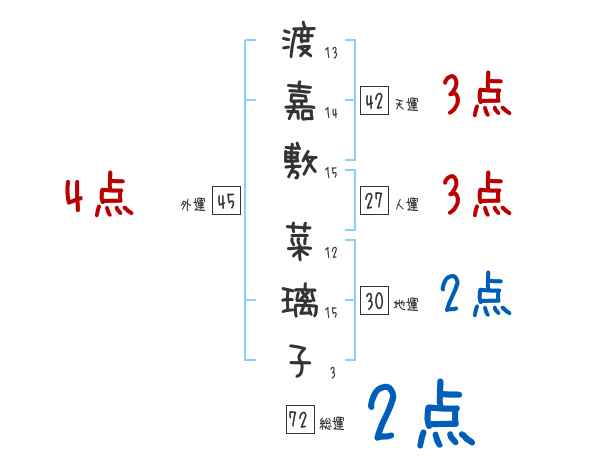 渡嘉敷菜璃子さんの画数の鑑定結果