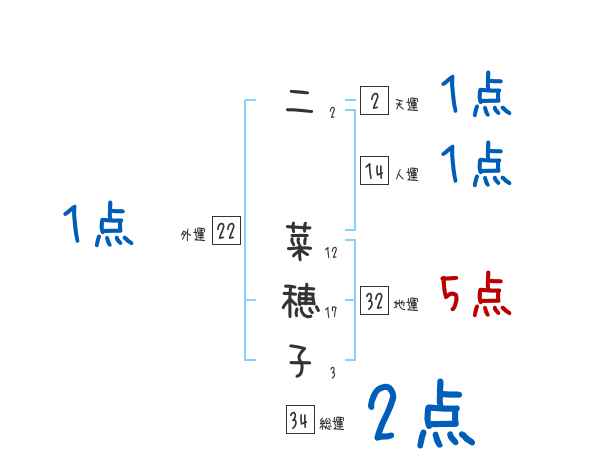 二菜穂子さんの画数の鑑定結果