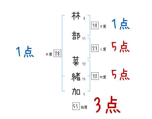 林部菜緒加さんの画数の鑑定結果