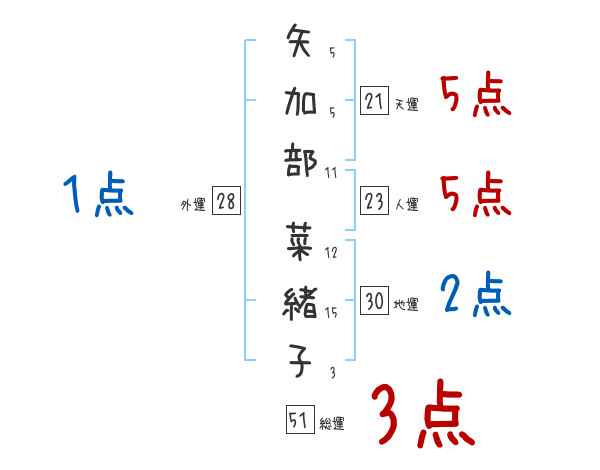矢加部菜緒子さんの画数の鑑定結果