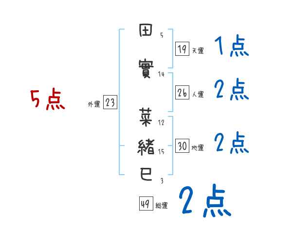 総運![]() | 田實菜緒巳さんの総運は49画の2つ星!不安定な性格で明暗がある人生。周りの人には支援されやすい。 あなたの人生を表す1番重要な運勢です。生涯を通じて影響する総合運となり、主に50歳以降の晩年期に影響を及ぼします。 |