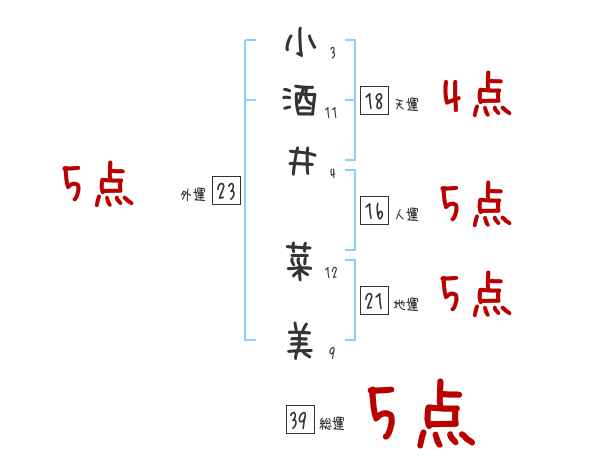 小酒井菜美さんの画数の鑑定結果