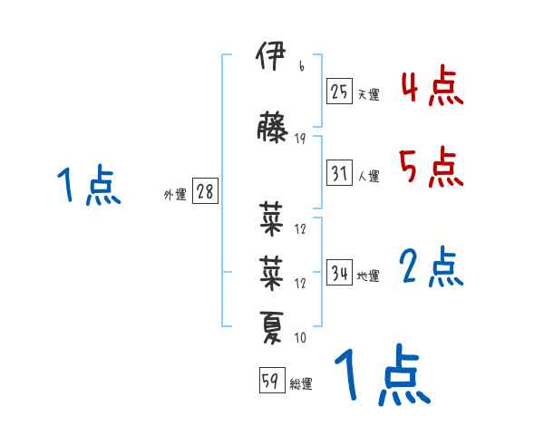 伊藤菜菜夏さんの画数の鑑定結果