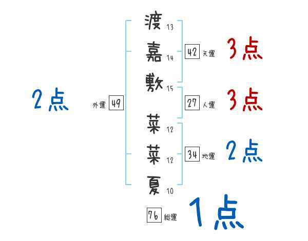 渡嘉敷菜菜夏さんの画数の鑑定結果