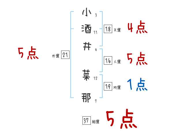 小酒井菜那さんの画数の鑑定結果