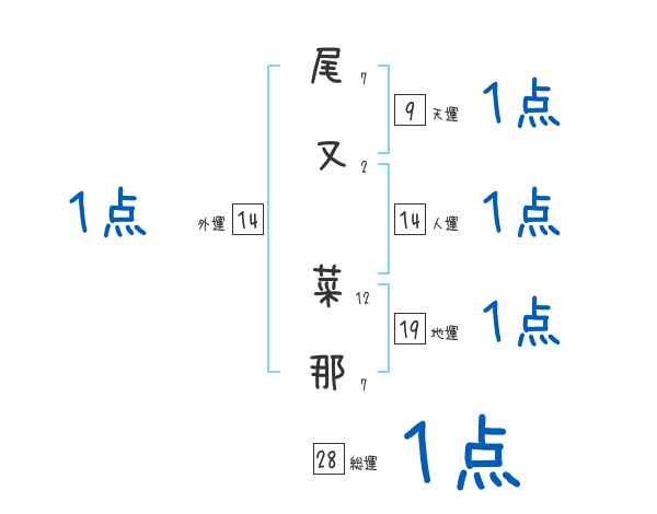 尾又菜那さんの画数の鑑定結果
