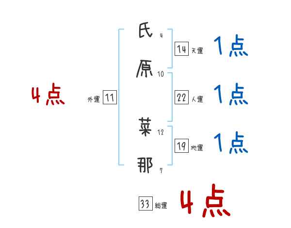 氏原菜那さんの画数の鑑定結果