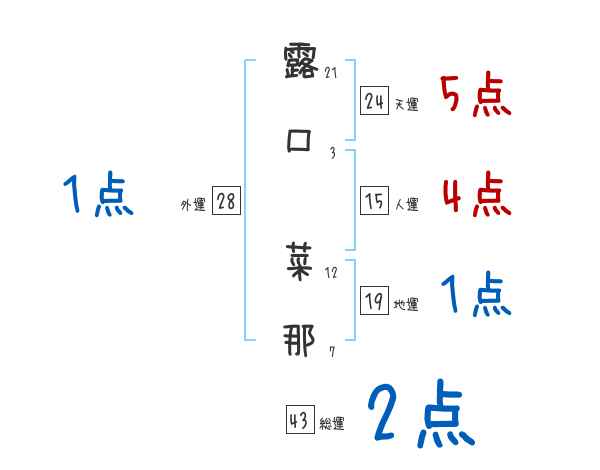 露口菜那さんの画数の鑑定結果