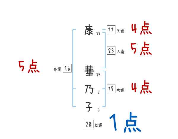 康華乃子さんの画数の鑑定結果