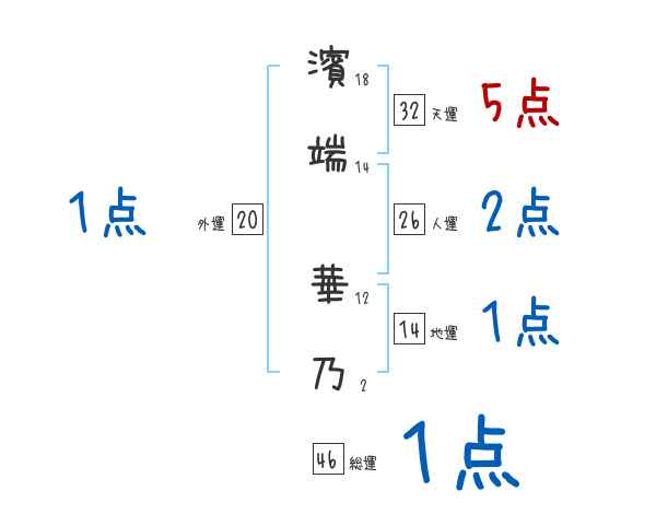 天運![]() | 濱端華乃さんの天運は32画の5つ星!柔軟性があり成功する。チャンスが多く金運が良い。 家系が持つ宿命的な運勢を表します。祖先から受け継いだ苗字ですので自分の力が及びません。家柄を象徴します。 |