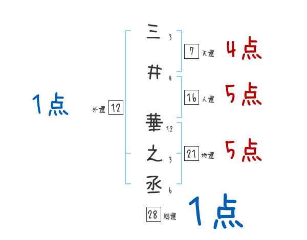 三井華之丞さんの画数の鑑定結果