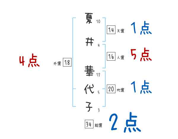 夏井華代子さんの画数の鑑定結果