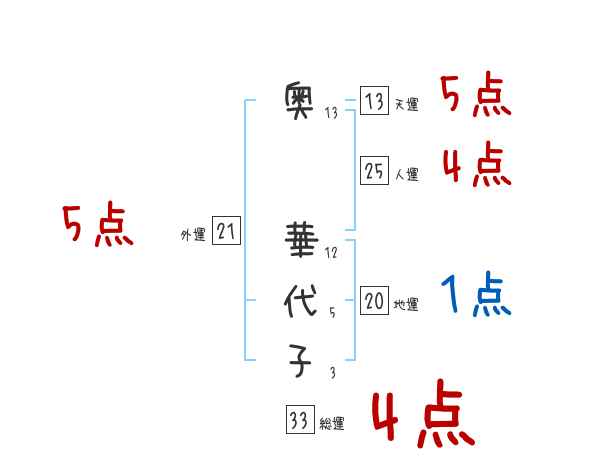 奥華代子さんの画数の鑑定結果
