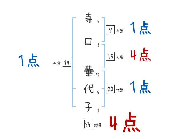 寺口華代子さんの画数の鑑定結果