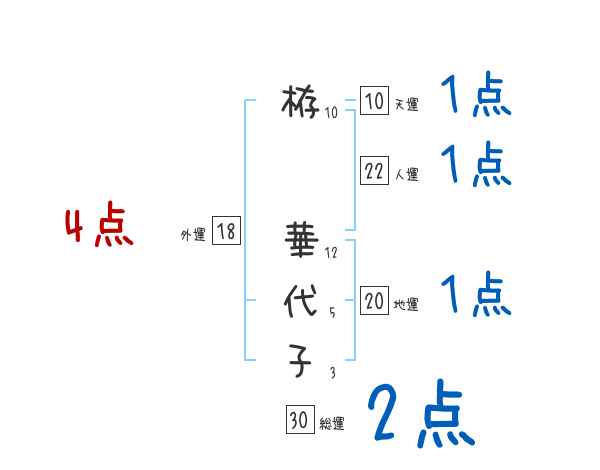 天運![]() | 栫華代子さんの天運は10画の1つ星!不安を感じやすい傾向。ストレスを抱えないように注意しましょう。 家系が持つ宿命的な運勢を表します。祖先から受け継いだ苗字ですので自分の力が及びません。家柄を象徴します。 |