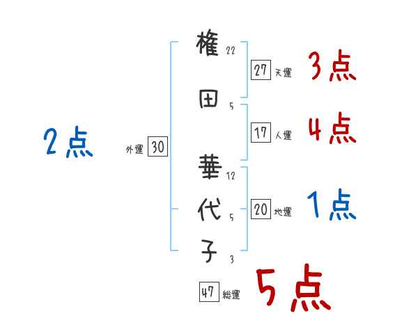 総運![]() | 権田華代子さんの総運は47画の5つ星!実力が開花し発展する円満な人生。財に恵まれる。 あなたの人生を表す1番重要な運勢です。生涯を通じて影響する総合運となり、主に50歳以降の晩年期に影響を及ぼします。 |