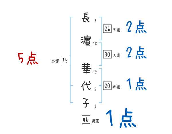 長濵華代子さんの画数の鑑定結果
