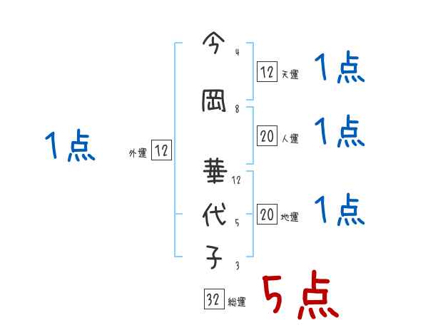 総運![]() | 今岡華代子さんの総運は32画の5つ星!柔軟性があり成功する。チャンスが多く金運が良い。 あなたの人生を表す1番重要な運勢です。生涯を通じて影響する総合運となり、主に50歳以降の晩年期に影響を及ぼします。 |