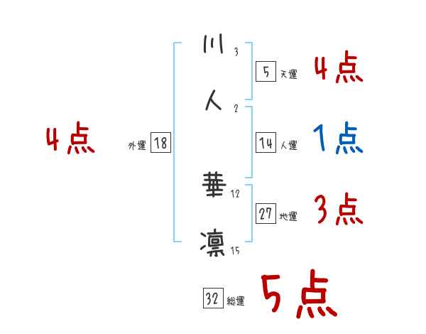 総運![]() | 川人華凛さんの総運は32画の5つ星!柔軟性があり成功する。チャンスが多く金運が良い。 あなたの人生を表す1番重要な運勢です。生涯を通じて影響する総合運となり、主に50歳以降の晩年期に影響を及ぼします。 |
