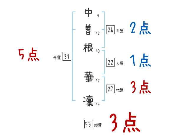 中曽根華凜さんの画数の鑑定結果